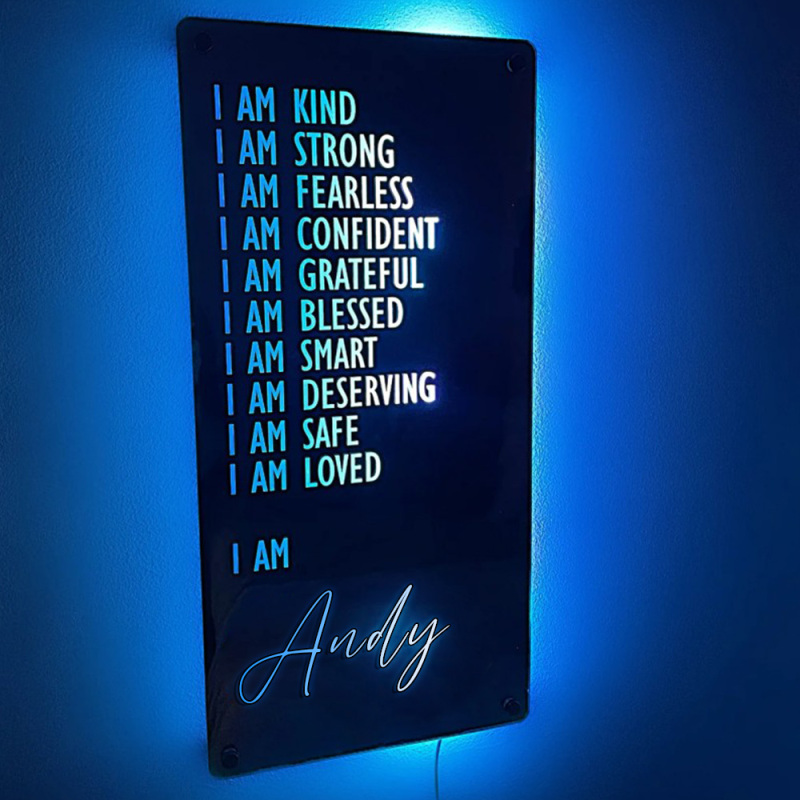 التأكيدات المخصصة مرآة Led ضوء النيون أنا مرآة اسم شخصي تضيء مرآة غرفة نوم جدار الفن لهدايا عيد الميلاد للأطفال أمي صديق