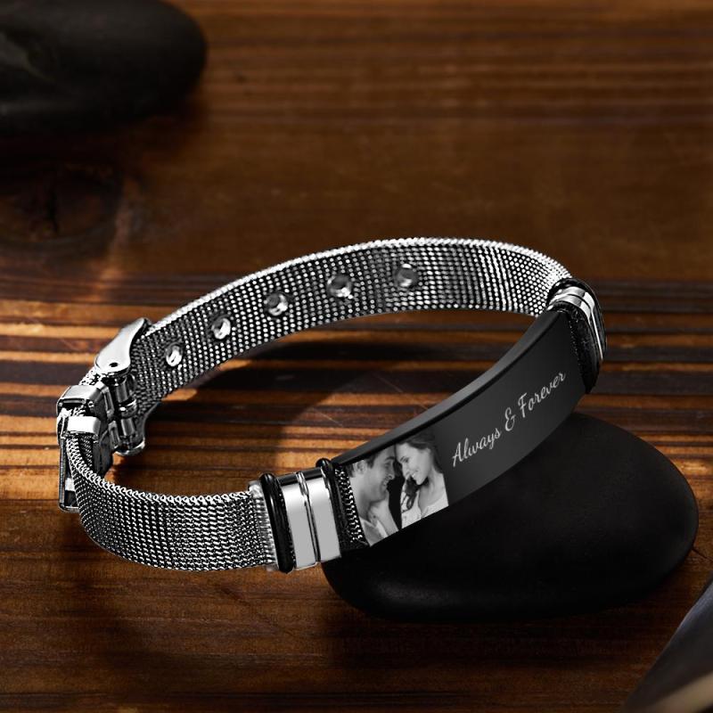 صورة مخصصة وسوار من الفولاذ المقاوم للصدأ محفور أفضل الهدايا للرجال هدية للزوجين