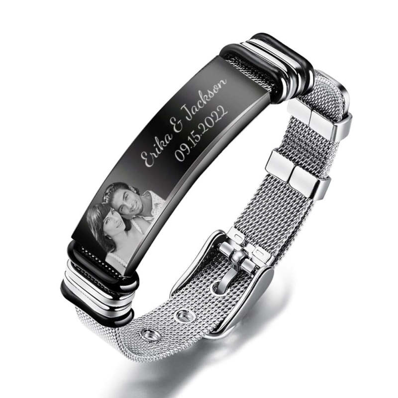 سوار من الفولاذ المقاوم للصدأ للرجال مخصص كهدية للذكرى السنوية لإضفاء طابع شخصي على تاريخك الخاص
