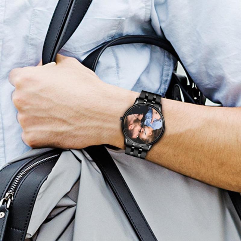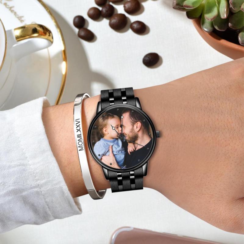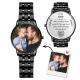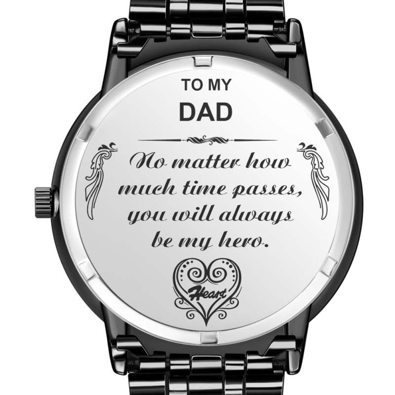 ساعة للرجال منقوشة بسوار من خليط معدني باللون الأسود، هدية لأبي أنا أحبك له