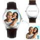ساعة رجالية منقوشة للصور مقاس 43 ملم بسوار من الجلد الأسود