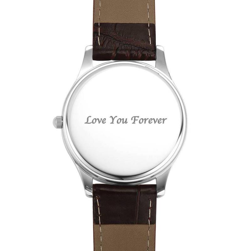 ساعة رجالية منقوشة للصور مقاس 43 ملم بسوار من الجلد البني