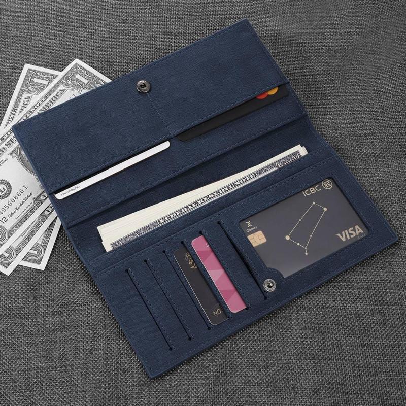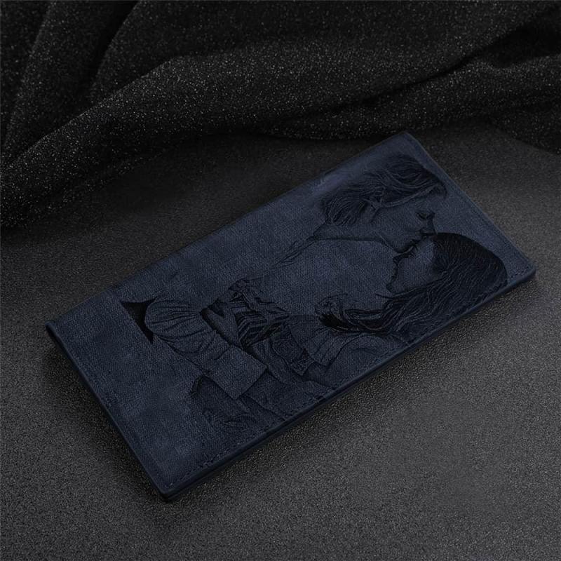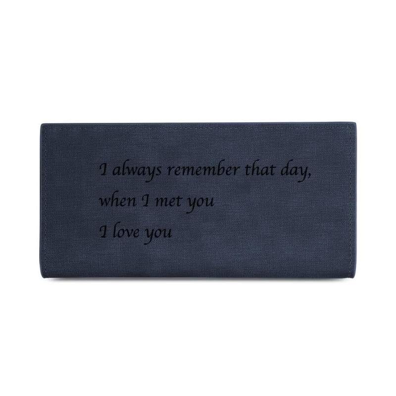 محفظة رجالية طويلة الطراز ثنائية الطي محفور عليها صورة مخصصة - جلد أزرق