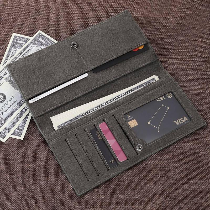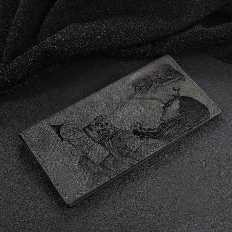 محفظة رجالية طويلة الطراز ثنائية الطي محفورة بصورة مخصصة - جلد رمادي