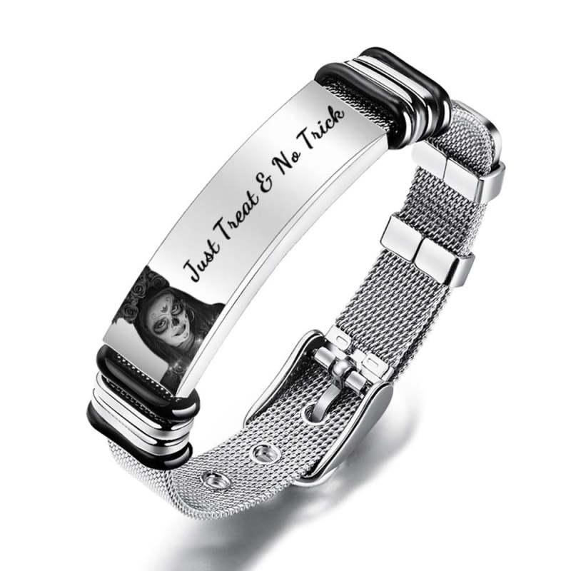 سوار صور مخصص محفورة الفولاذ المقاوم للصدأ الرجال سوار هدية لهدايا الهالوين