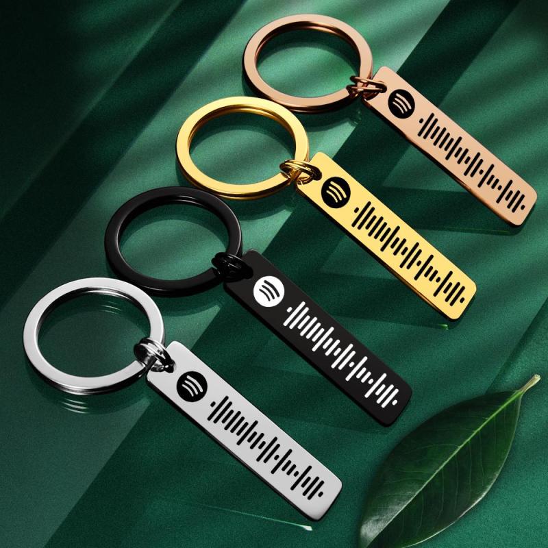 سلسلة مفاتيح رمز سبوتيفي قابلة للمسح، سلاسل مفاتيح أغنية موسيقى مخصصة هدايا الاثنين باللون الأسود والأخضر