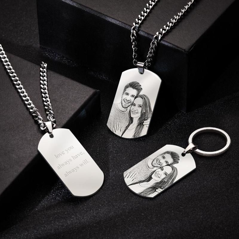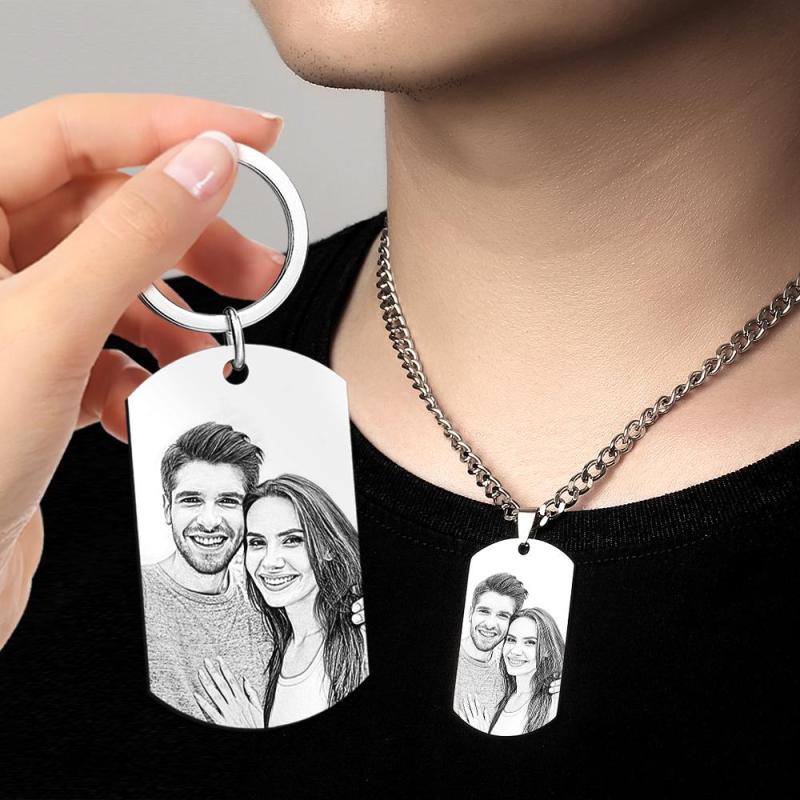 صورة مخصصة قلادة سلسلة المفاتيح مجموعة صور الكلب العلامات مجموعة هدايا لأبي
