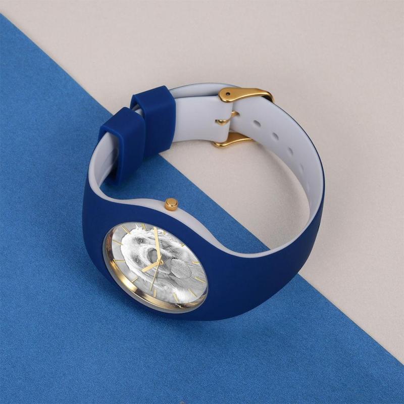 ساعة صور منقوشة سيليكون للجنسين ساعة صور منقوشة للجنسين 41 ملم حزام أزرق وأبيض - رسم