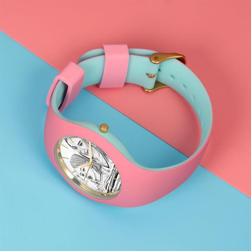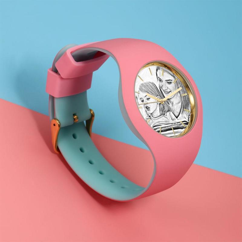 ساعة صور منقوشة سيليكون للجنسين ساعة صور منقوشة للجنسين 41 ملم حزام وردي وأزرق - رسم