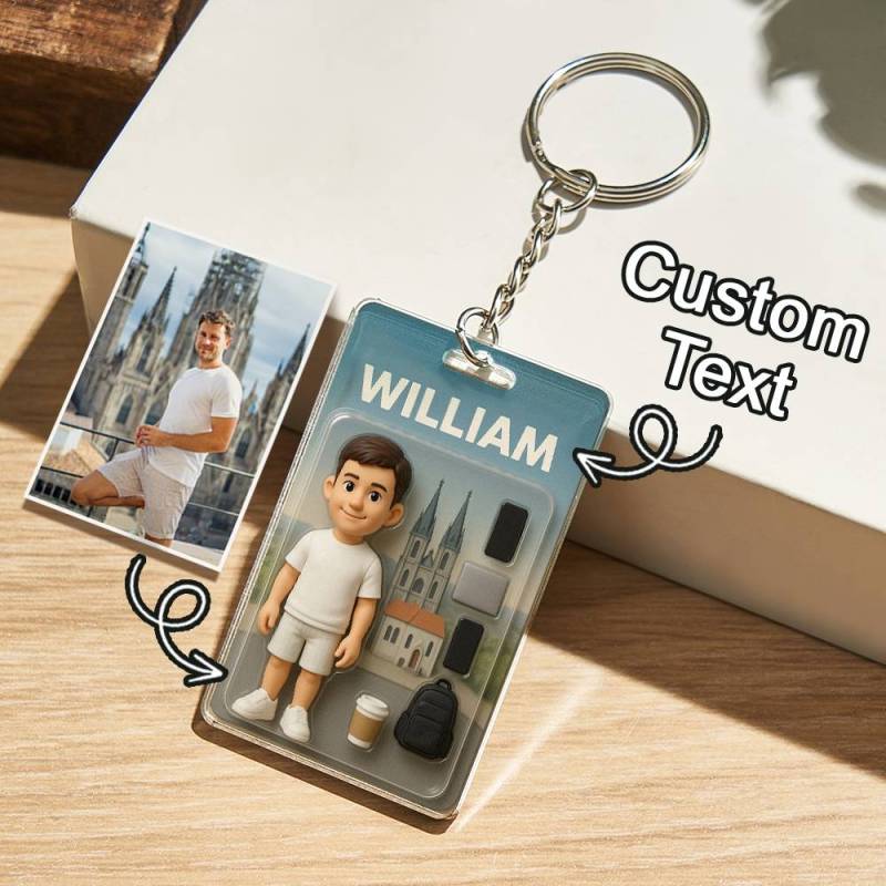 مجموعة شخصيات متحركة ثلاثية الأبعاد مع تغليف صندوق ألعاب على شكل هدية فنية سلسلة مفاتيح أكريليك مخصصة هدية للأب هدية عيد الأب