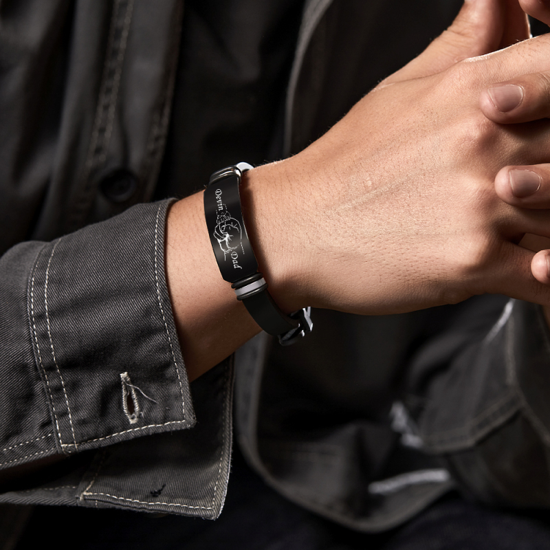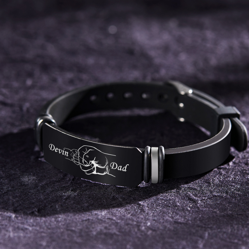 سوار أسود محفور للرجال مخصص يحمل أيديهم سوار عيد الأب هدية مثالية للأب