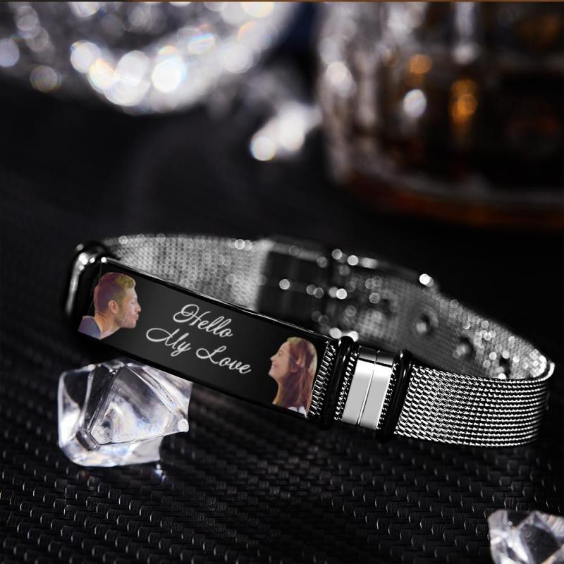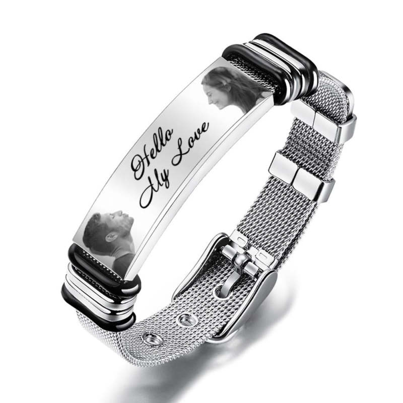 سوار رجالي مخصص مع صورة مزدوجة وكلمات محفورة أفضل الهدايا لمن تحب