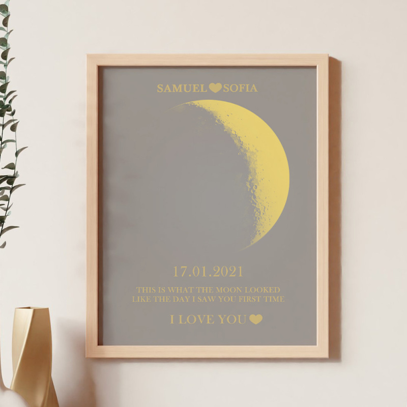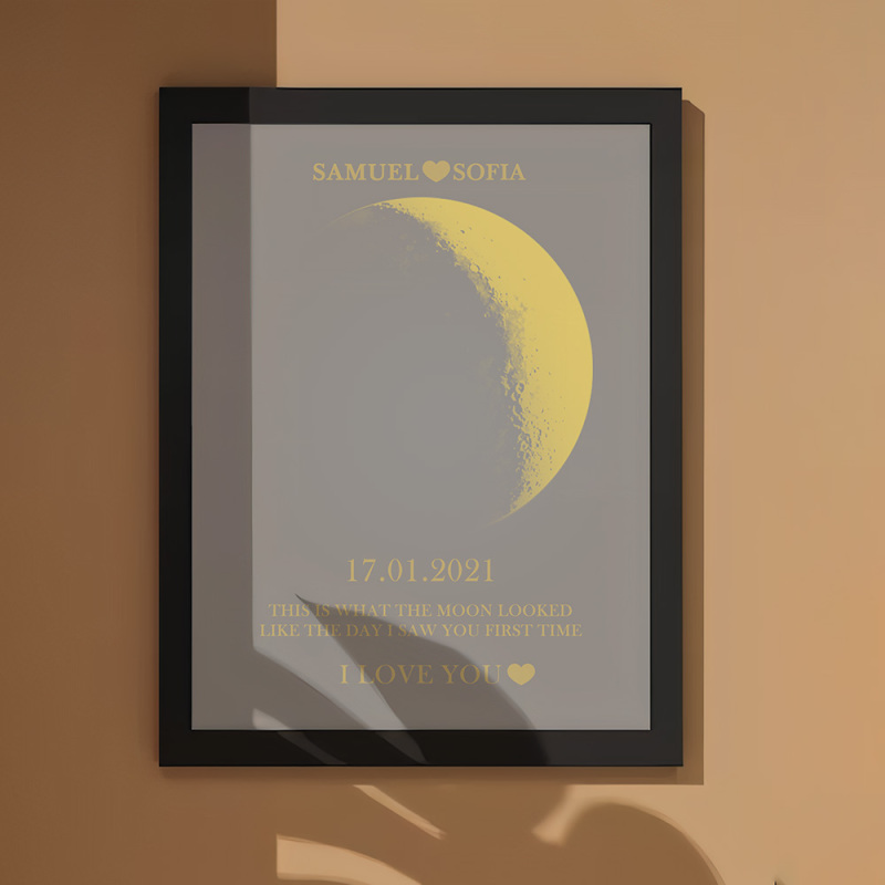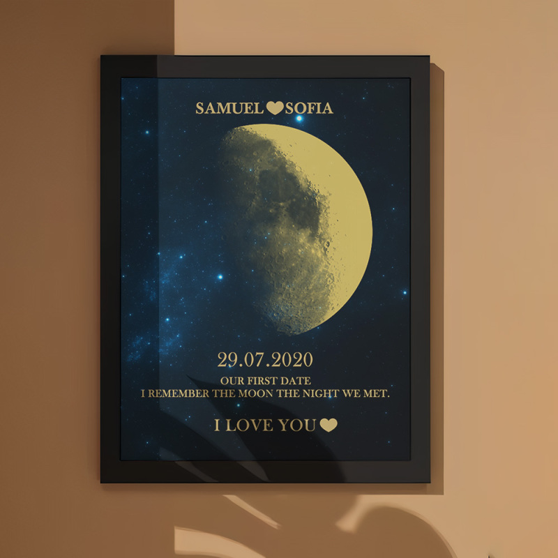 في كل لحظة غير عادية، نستخدم مراحل القمر الأبدية لإحياء ذكرى تلك اللحظات الدافئة. احتفل بحبك بهدية مدروسة وشخصية، واصنع ذكريات عزيزة فريدة لتلك الليلة الخاصة. يعرض الإطار الخشبي المطبوع عليه صورة القمر الليلي المرحلة القمرية الدقيقة من الليلة التي التقيت فيها لأول مرة أو اليوم الذي ولدت فيه، مما يجعله هدية استثنائية وغنية عاطفيًا حقًا.