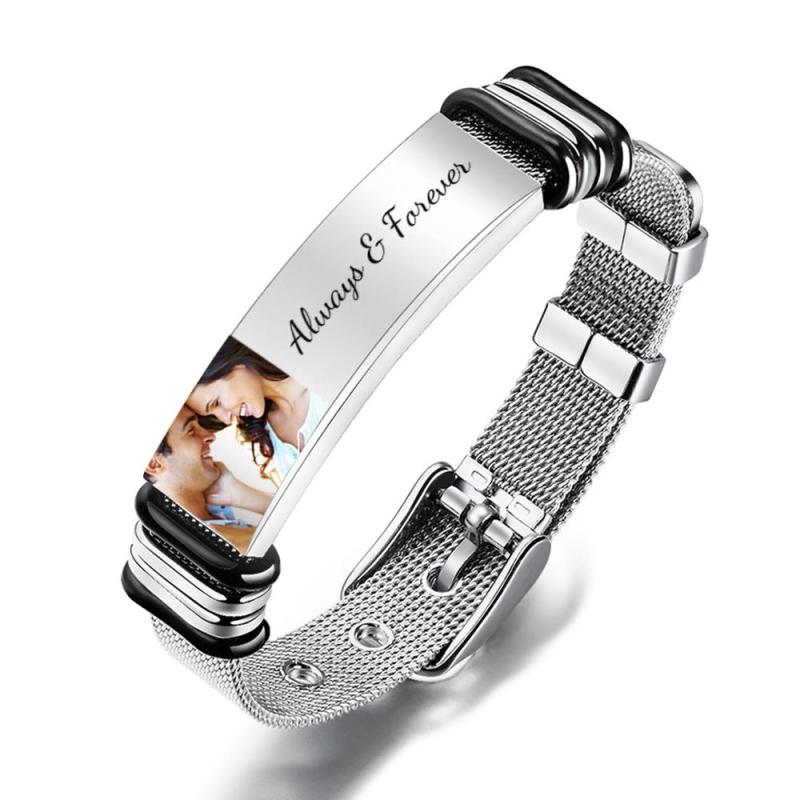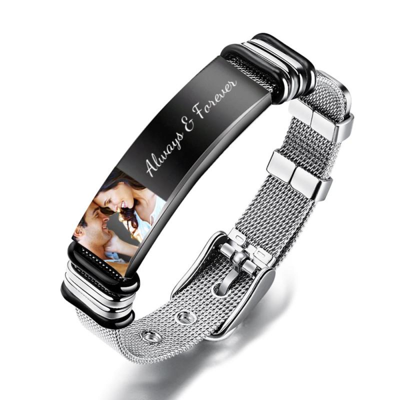 صورة مخصصة وهدية سوار الفولاذ المقاوم للصدأ محفورة للأزواج