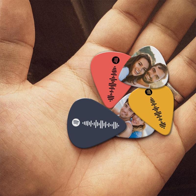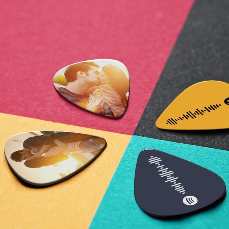 اختيار جيتار رمز سبوتيفي قابل للمسح، هدايا اختيار جيتار صور موسيقى مخصصة منقوشة 12 قطعة