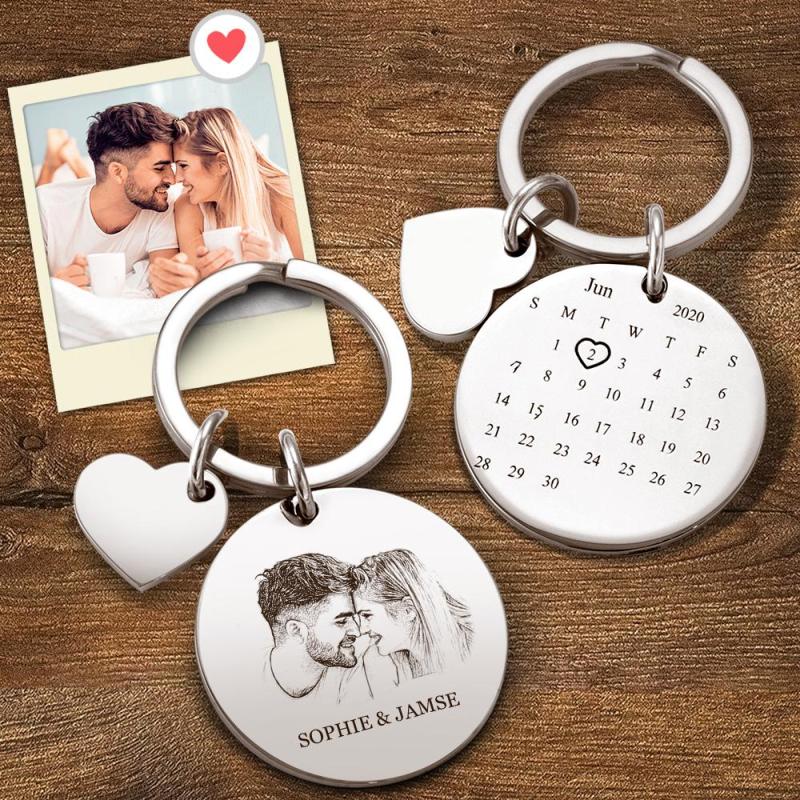 تخصيص التقويم المفاتيح صور المفاتيح زوجين هدية الزفاف التذكارية المفاتيح