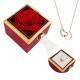 قلادة على شكل قلب منقوش مع صندوق مجوهرات على شكل زهرة محفوظة باللون الأحمر