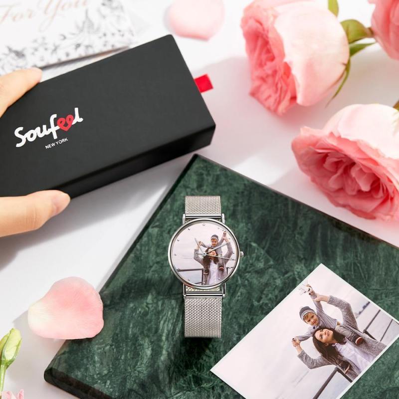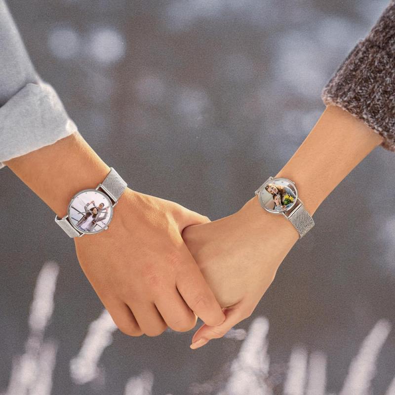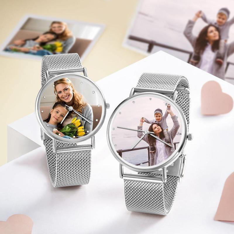 ساعة منقوشة بالصور مصنوعة من سبيكة معدنية بحزام فضي 36 ملم - للنساء