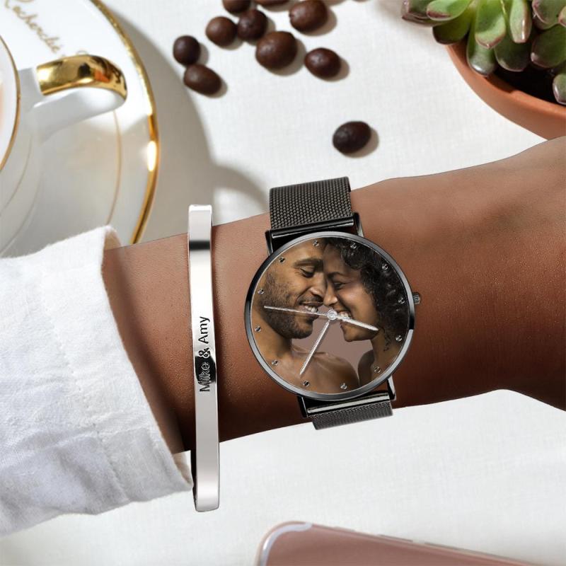 ساعة نسائية منقوشة بسوار من خليط معدني أسود مقاس 36 ملم