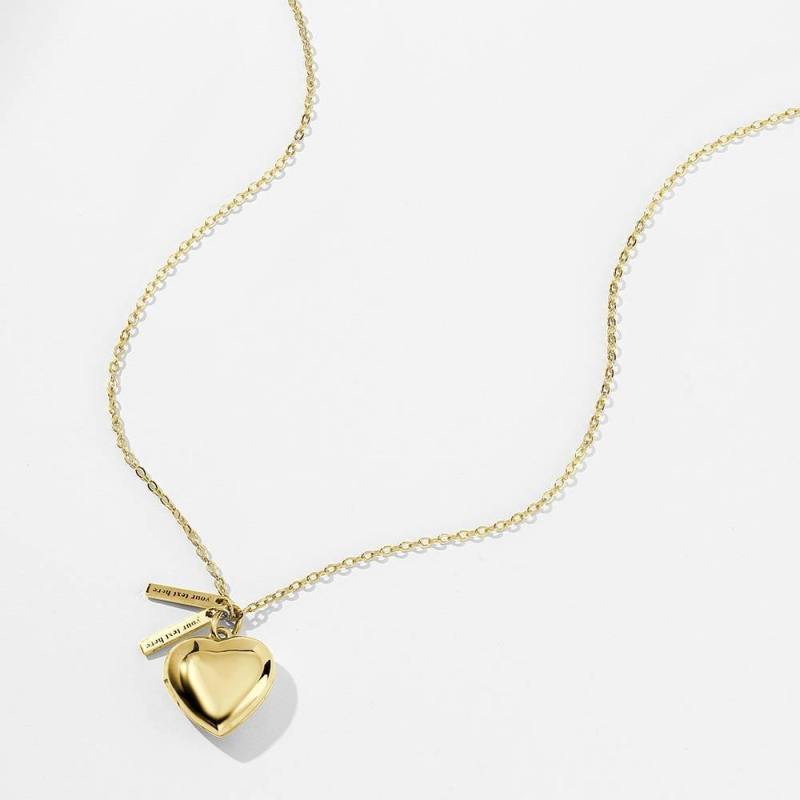 قلادة مدلاة بصورة قلب مع شريطين منقوشين مطلية بالذهب عيار 14 قيراط هدية له