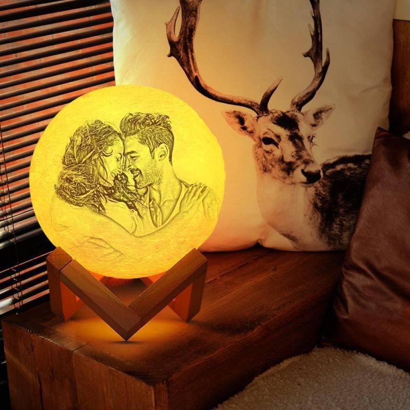 مصباح صور القمر، ضوء صور ثلاثي الأبعاد مخصص - جهاز تحكم عن بعد 16 لونًا