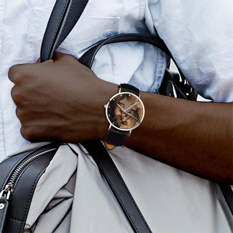 ساعة صور منقوشة للجنسين بحزام جلدي أسود مقاس 40 ملم هدية تذكارية لعيد الحب