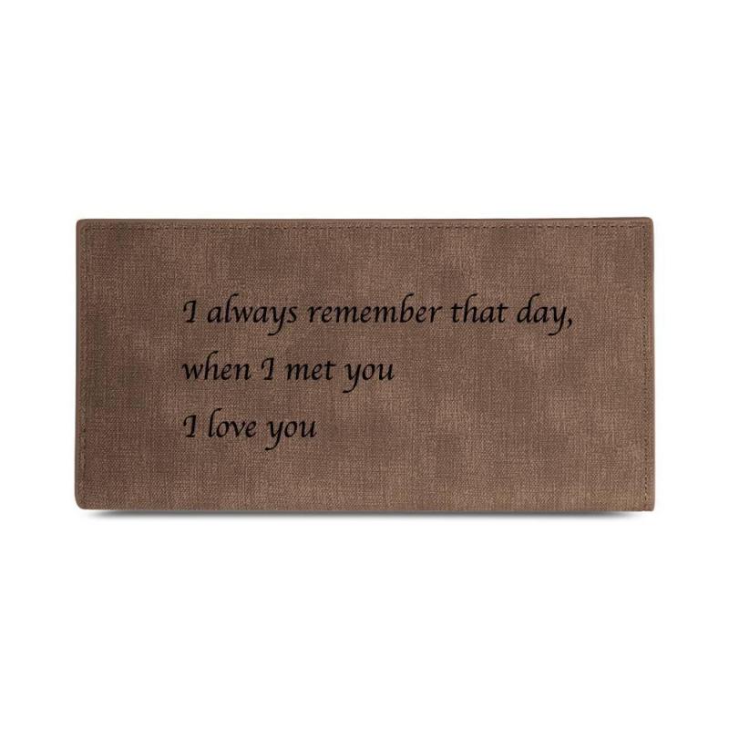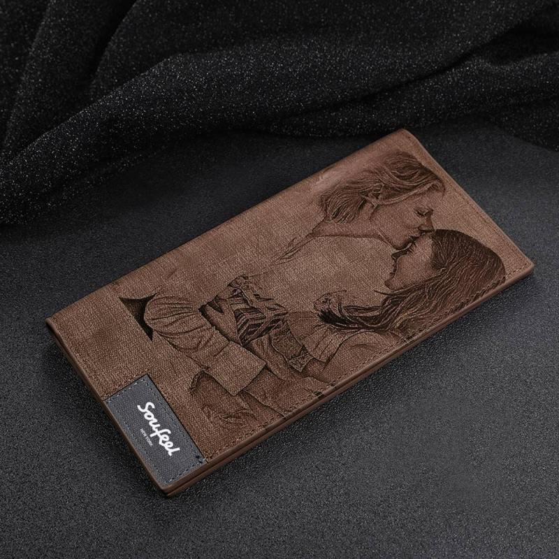 محفظة طويلة محفورة بصور مخصصة ثنائية الطي - جلد بني