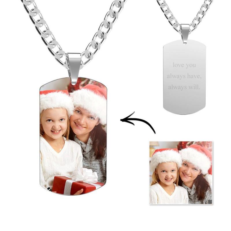 قلادة للرجال تحمل علامة الصور مع نقش هدايا عيد الميلاد من الفولاذ المقاوم للصدأ