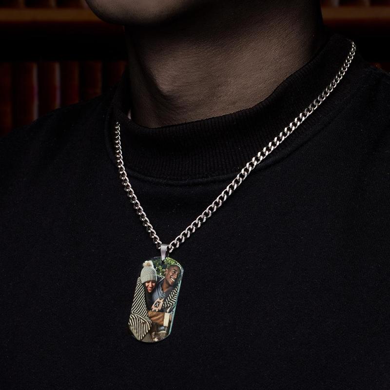 قلادة للرجال تحمل علامة الصور مع نقش من الفولاذ المقاوم للصدأ لهدايا عيد الحب