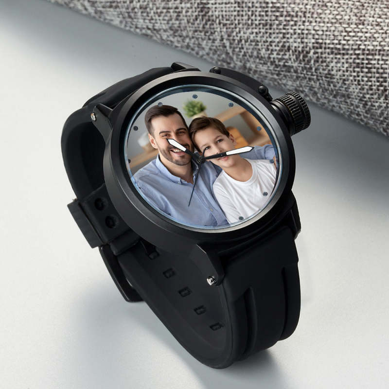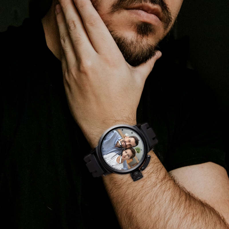 اطبع وجهك بالكامل على ساعة رياضية رجالية حقيقية. ابتهج أو أظهر حبك ودعمك لمن تحب من خلال فكرتك الرائعة. للبدء، قم بتحميل صورتك، وسيعمل فريق التصميم لدينا بجد للحصول على صورة مثالية لوجهك من صورتك التي تم تحميلها.