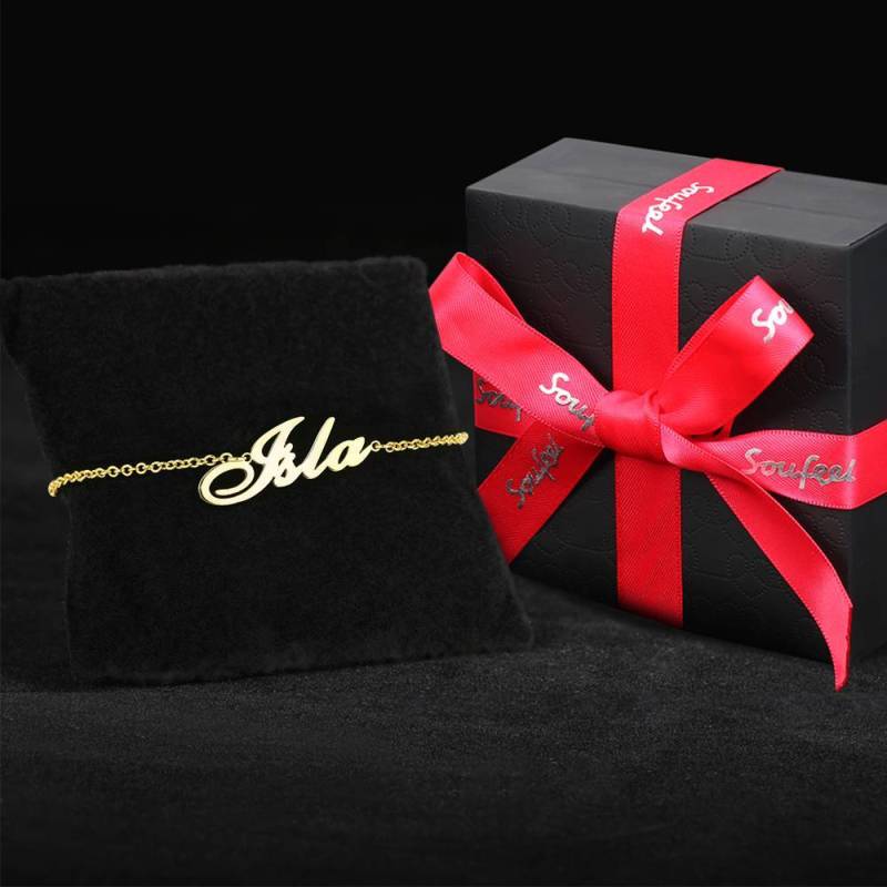 خلخال اسم شخصي مطلي بالذهب عيار 14 - ذهبي