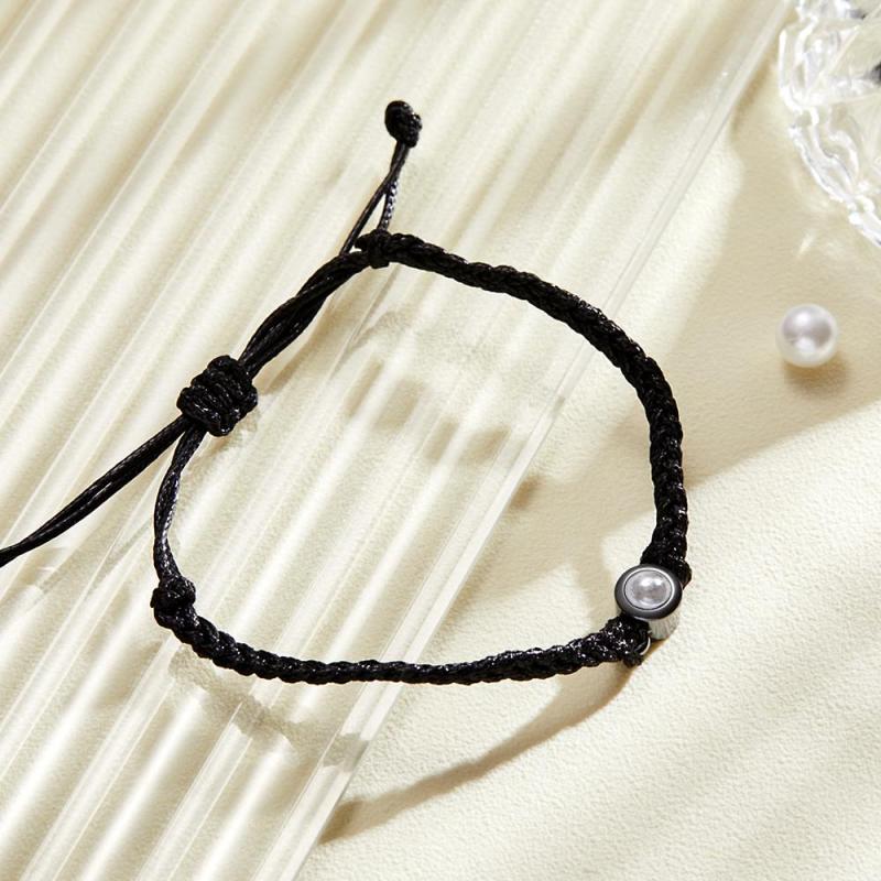 سوار مزدوج لعرض الصور الشخصية مضفر بحبل أسود على شكل دائرة هدية لعيد الأم