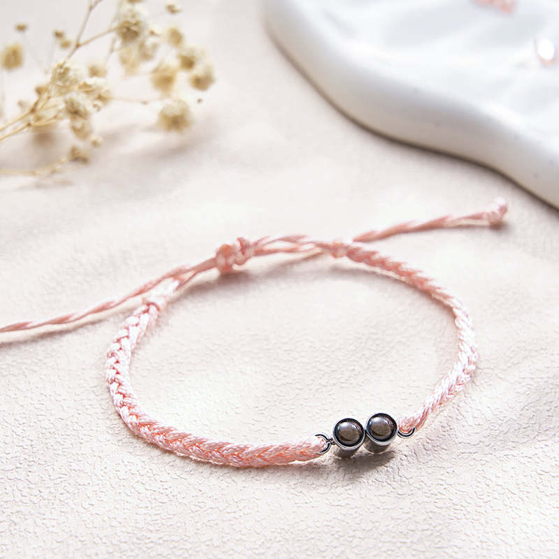 سوار ذو صورة شخصية مُسقطة متعدد الألوان حبل مضفر مخصص لصورتين سوار هدية بسيطة