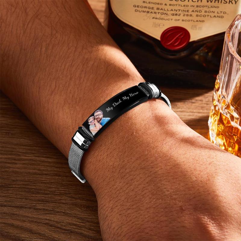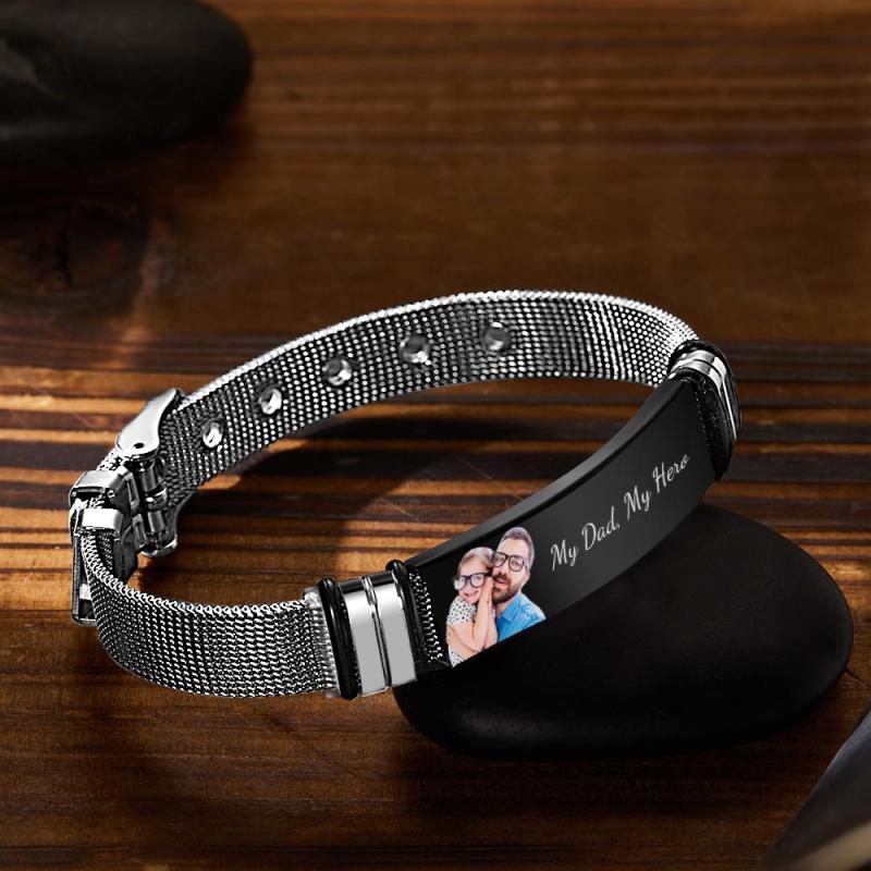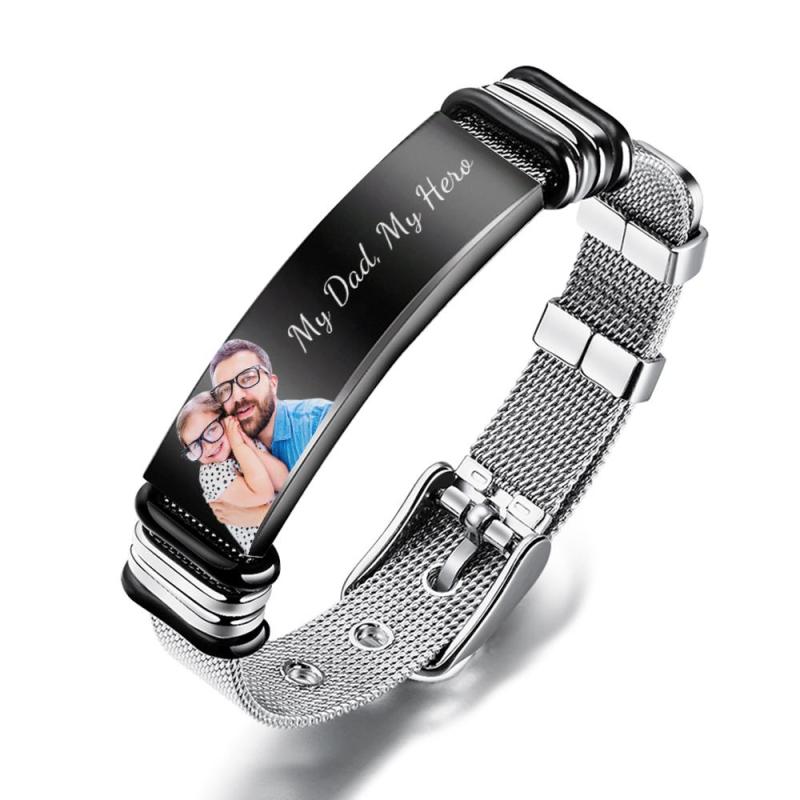 صورة مخصصة وسوار من الفولاذ المقاوم للصدأ محفور، أفضل هدية لعيد الأب