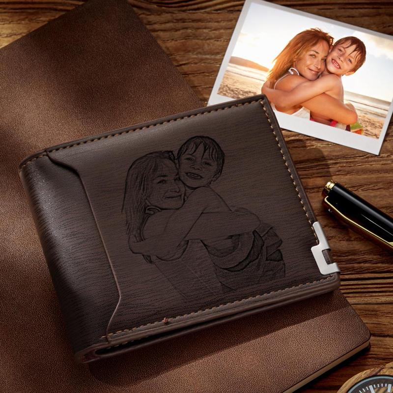 محفظة قصيرة محفورة بصور مخصصة قابلة للطي، هدية للأم - جلد بني
