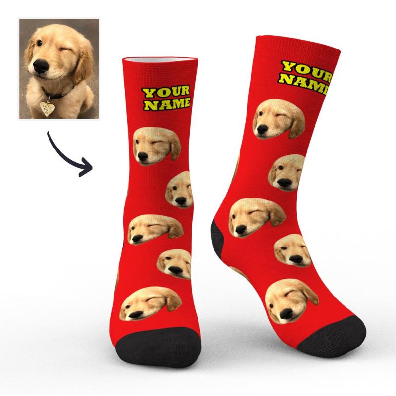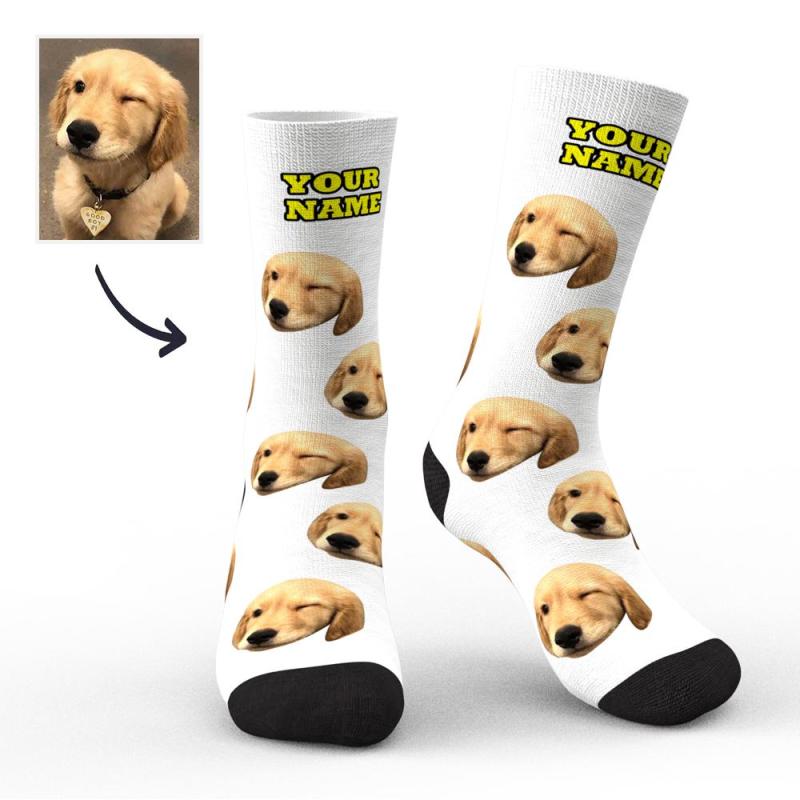 جوارب مخصصة، جوارب للوجه، جوارب صور مع النص الخاص بك، معاينة ثلاثية الأبعاد، جوارب ملونة للحيوانات الأليفة