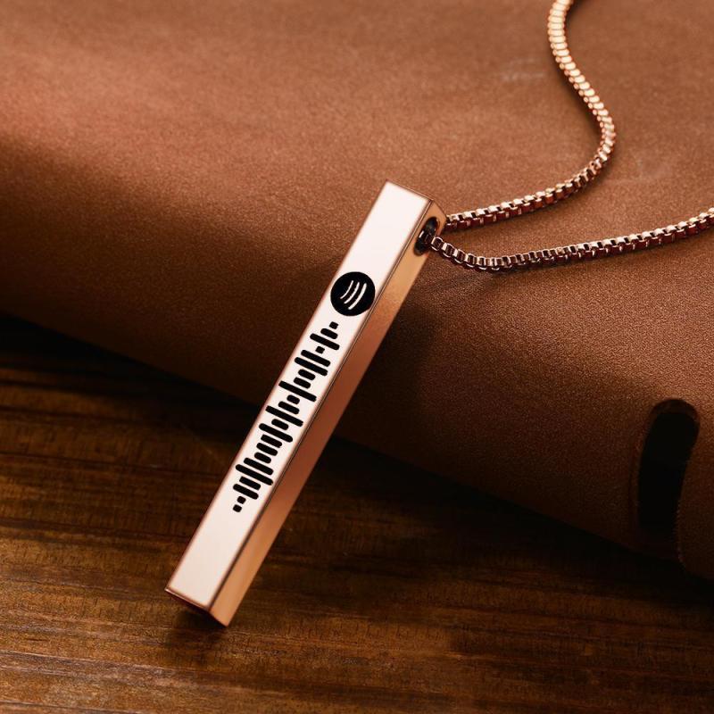 قلادة رمز سبوتيفي قابلة للمسح ثلاثي الأبعاد منقوشة على شكل شريط عمودي هدايا لصديقتك باللون الأسود