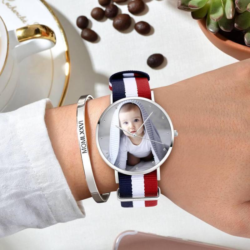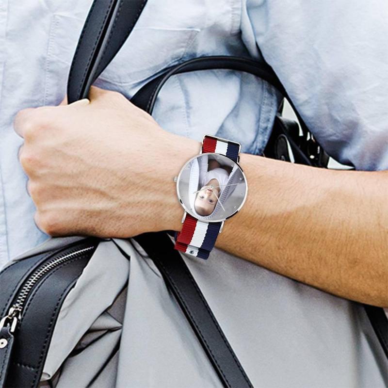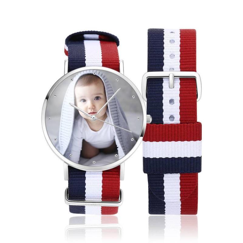 ساعة صور محفورة للجنسين حزام نايلون ملون 40 ملم